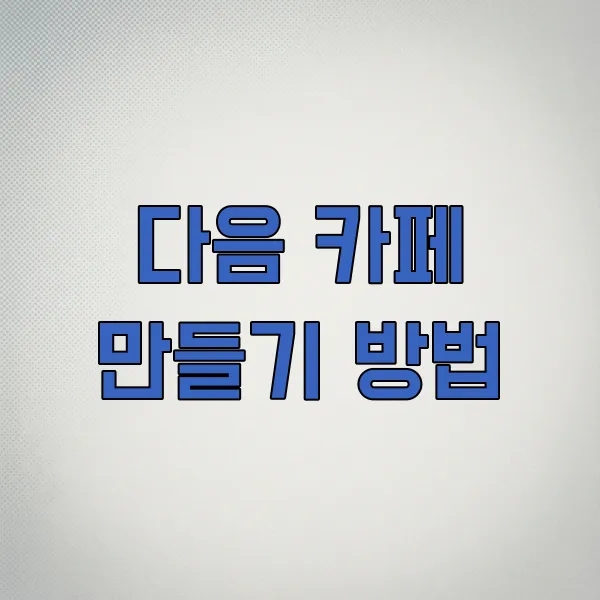 [이용 안내] 본 콘텐츠는 다음 카페 개설 및 운영에 대한 일반적인 정보를 제공하며, 특정 서비스의 이용을 권유하거나 보장하지 않습니다. 실제 서비스 이용 시에는 관련 약관 및 정책을 반드시 확인하시기 바랍니다.
